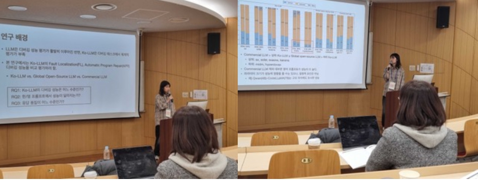 SELab(지도교수 김진대) 학부연구생 정수정 학생이 2026년 2월4~6일간 UNIST에서 열린 2026 한국 소프트웨어공학 학술대회 (KCSE 2026)에서 발표한 논문 "Ko-LLM 의 디버깅 성능 및 답변 품질 비교 분석", (정수정, 정호연, 박효근, 김진대)이 학부생 논문 트랙에서 우수 논문상을 수상하였습니다.
