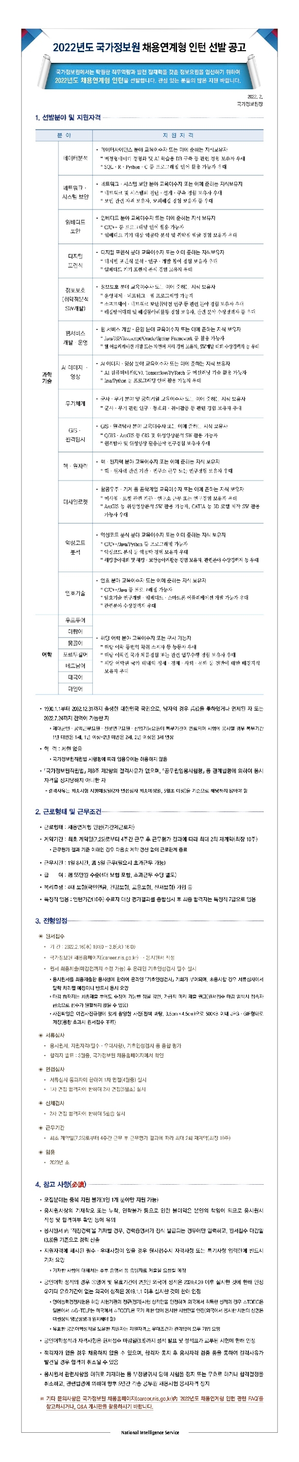 [채용] 국가정보원 2022년도 채용연계형 인턴 모집