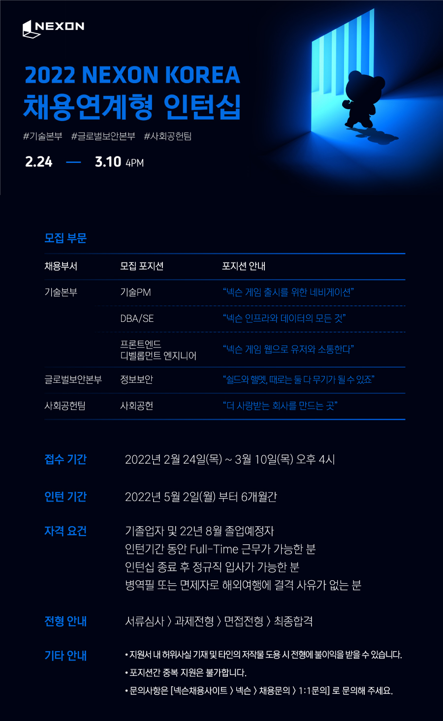 [채용] 넥슨코리아 채용연계형 인턴십(~3/10)
