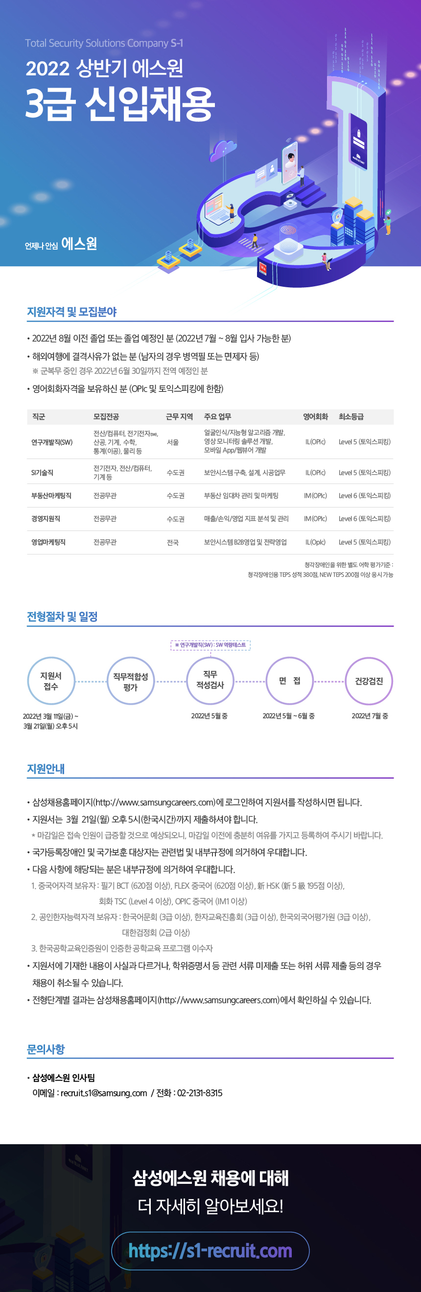 이메일 : recruit.s1@samsung.com / 전화 : 02-2131-8315