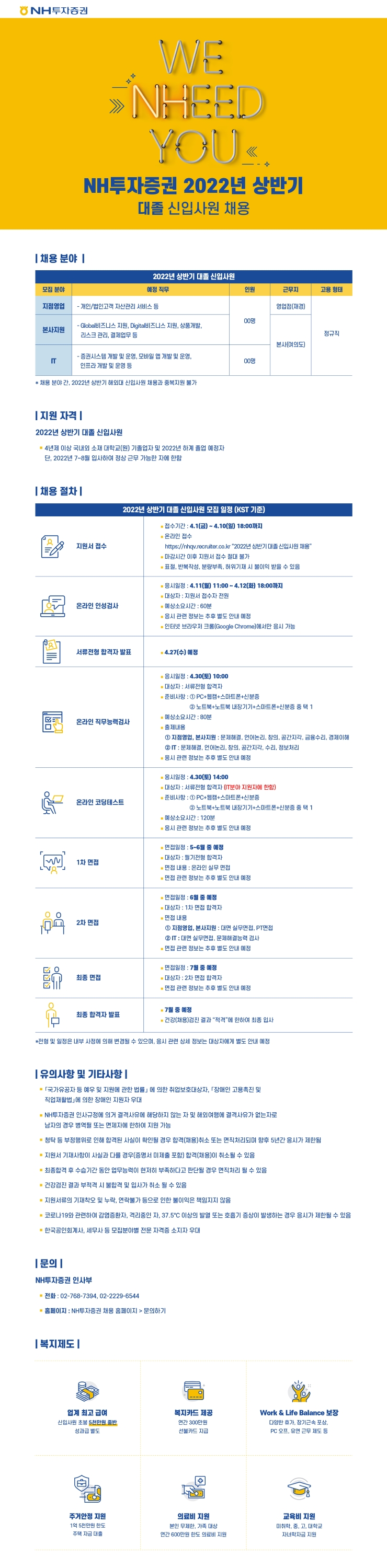 [채용] NH투자증권 2022 대졸 신입사원 채용