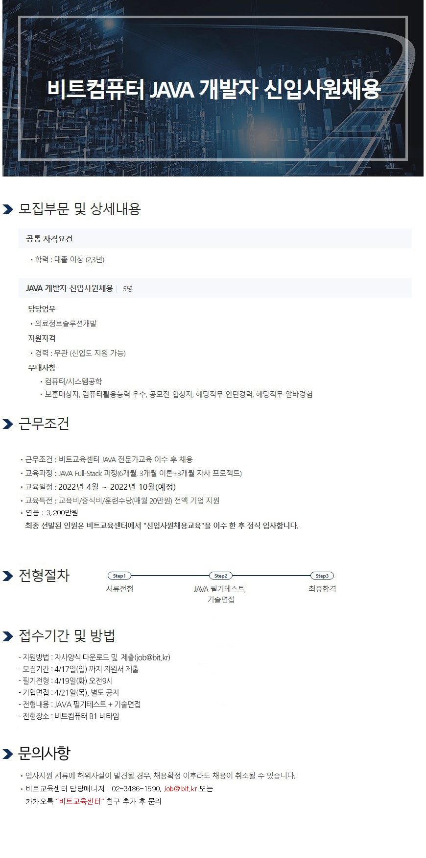 [채용] 비트컴퓨터 JAVA 개발자 신입사원 채용