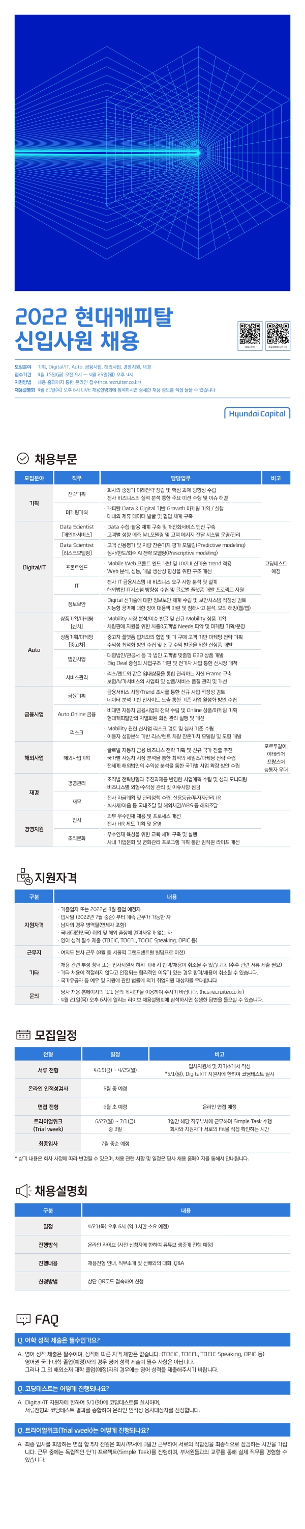 [채용] 2022 현대캐피탈 신입사원 채용 (~4.25)