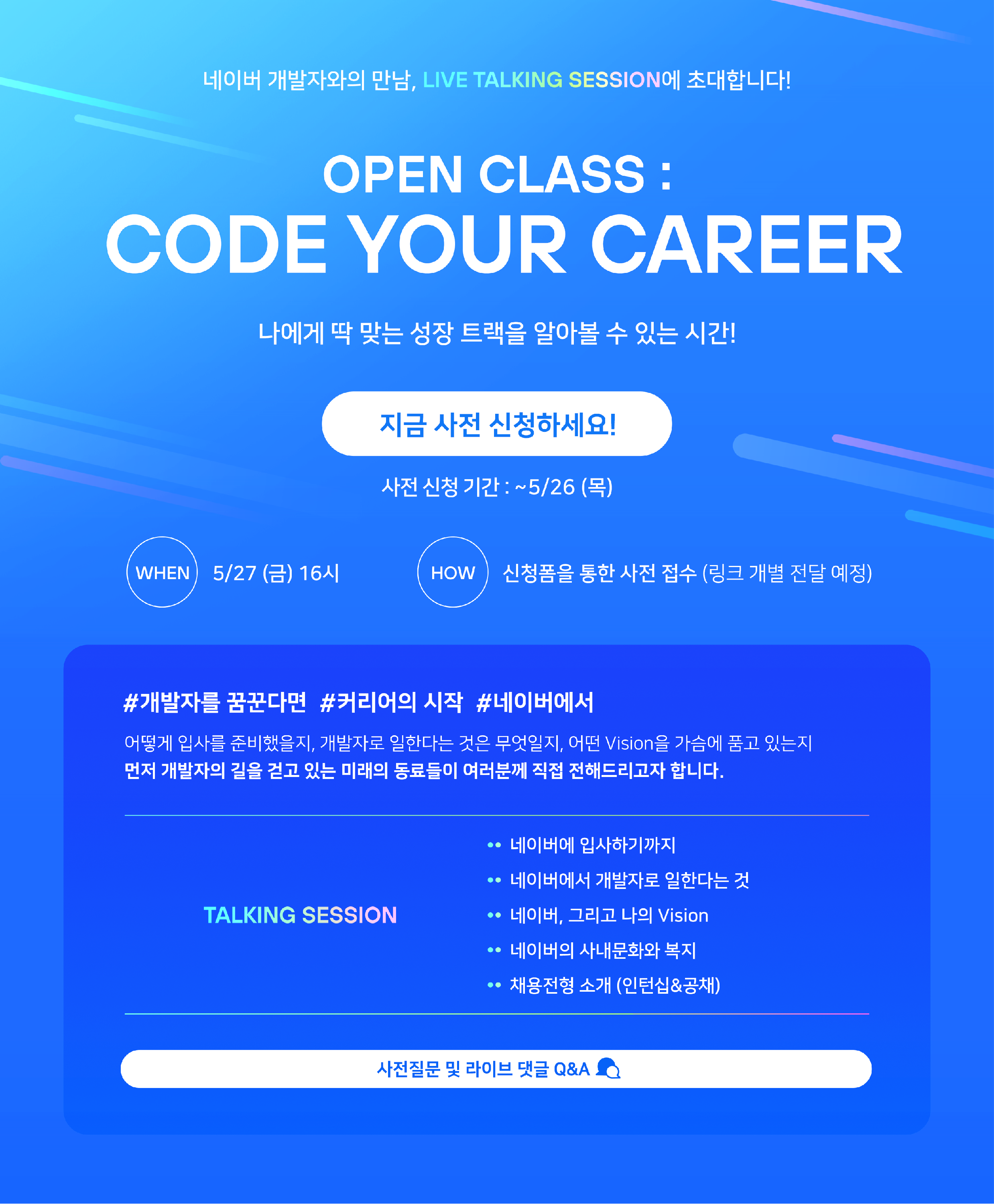 [네이버] 개발자와의 만남, LIVE 토킹세션(채용설명회) 사전신청 접수(~5/26)