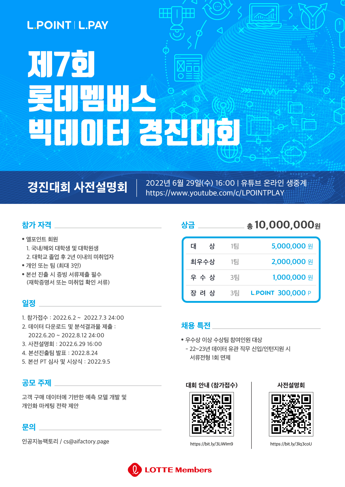 [대회/공모전] 제7회 롯데멤버스 빅데이터 경진대회