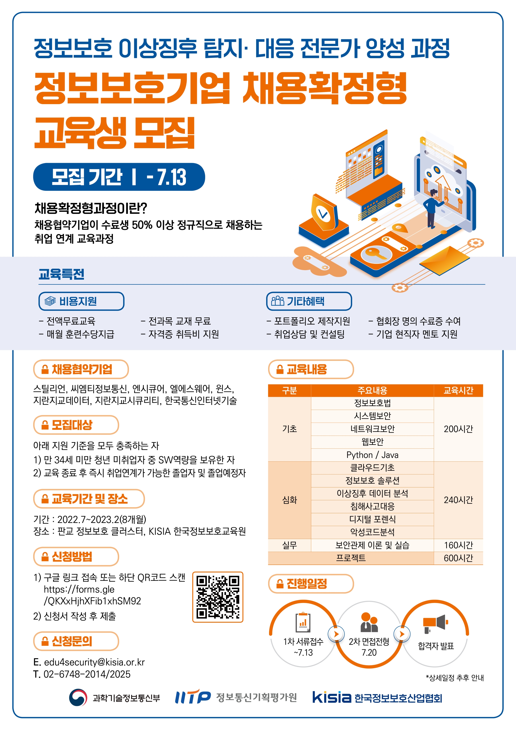 [교육/강연] KISIA - 2022년도 정보보호기업 채용확정형 교육