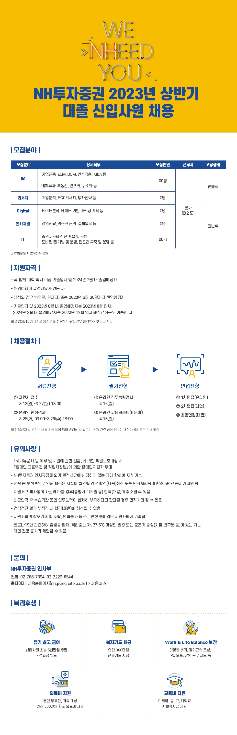 [채용] NH투자증권 2023 상반기 신입/인턴 채용