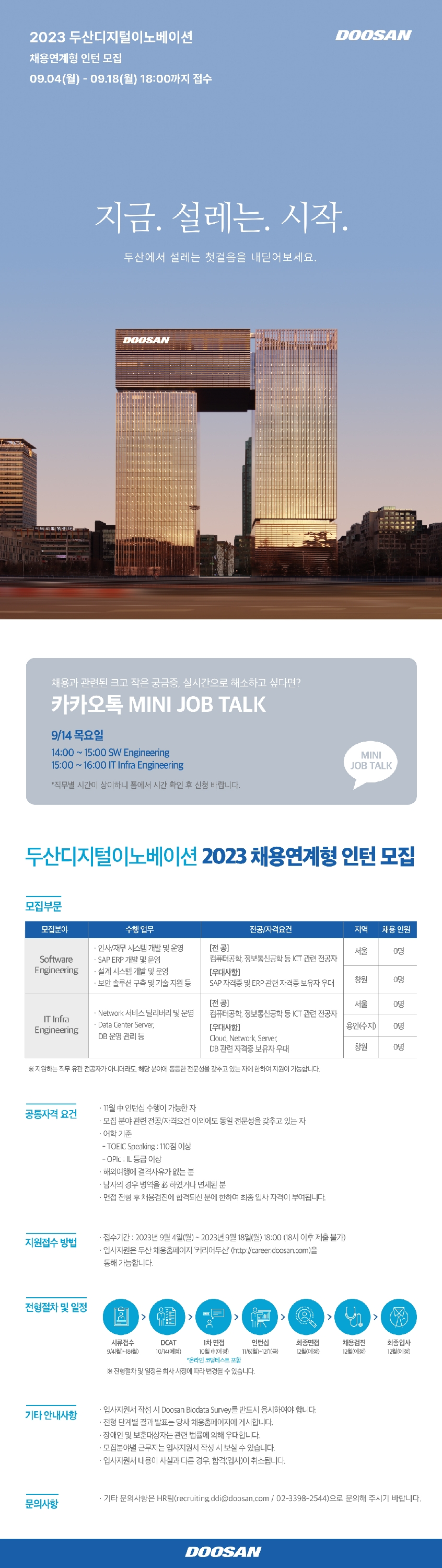 [채용] 두산디지털이노베이션 2023년 채용연계형 인턴 모집