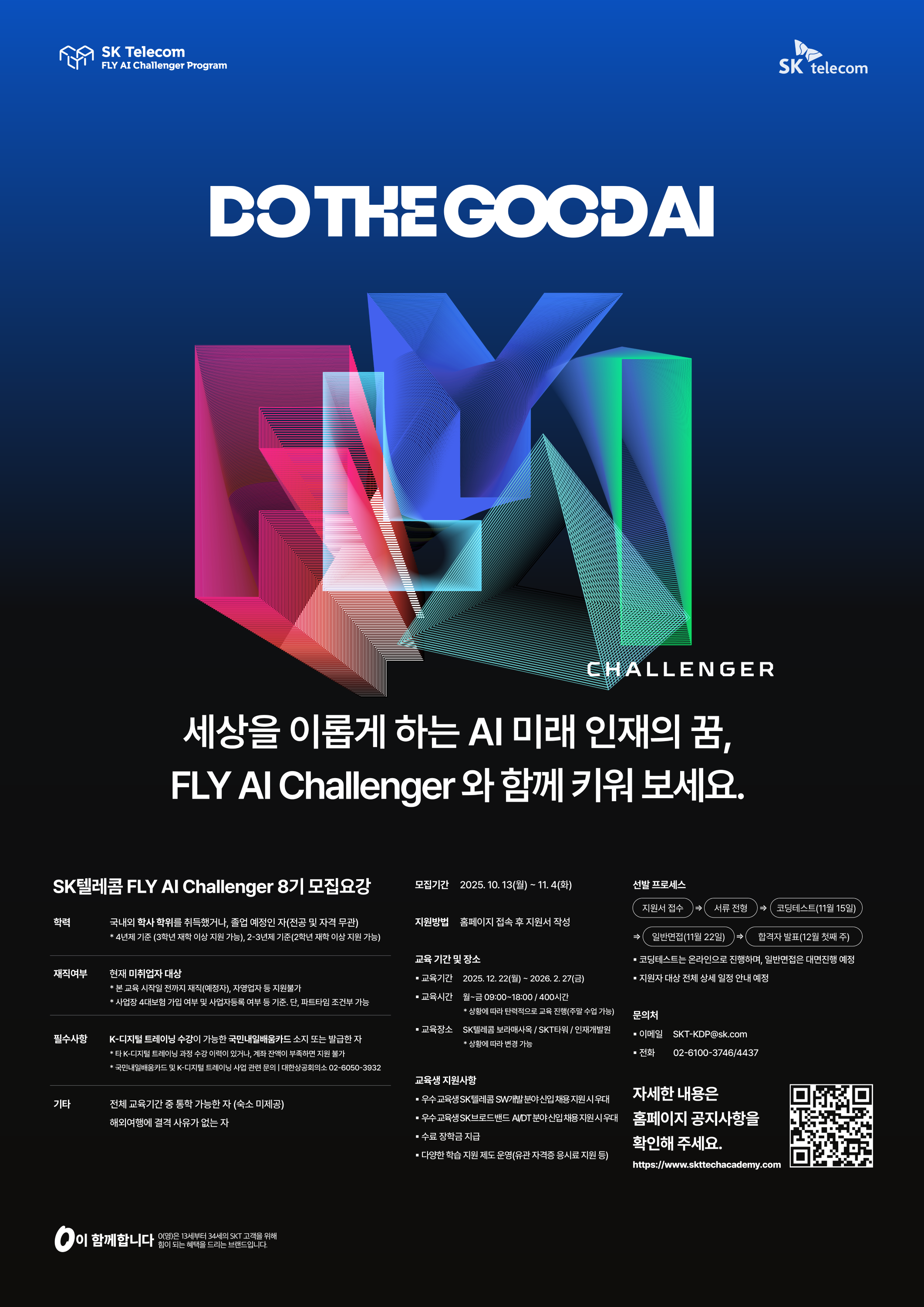 | 제목 | SK텔레콤 FLY AI Challenger 8기 모집(~11/4) | ||||