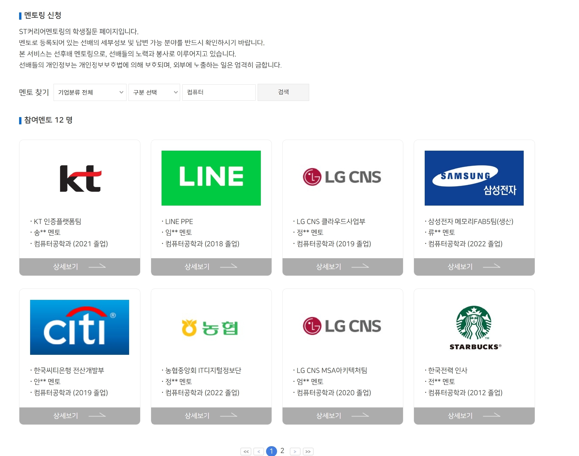 - 멘토로 등록되어 있는 선배 확인 후 질문 작성